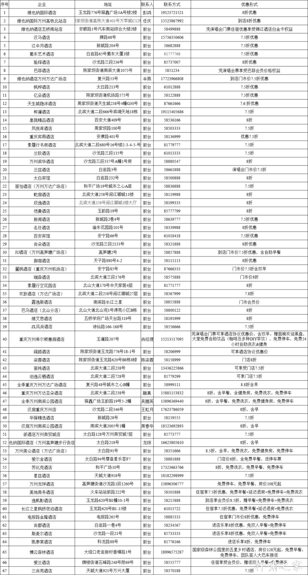金曲传奇开唱期间,万州各大酒店纷纷化身“福利派送员”,为乐迷们提供超给力的住宿优惠。