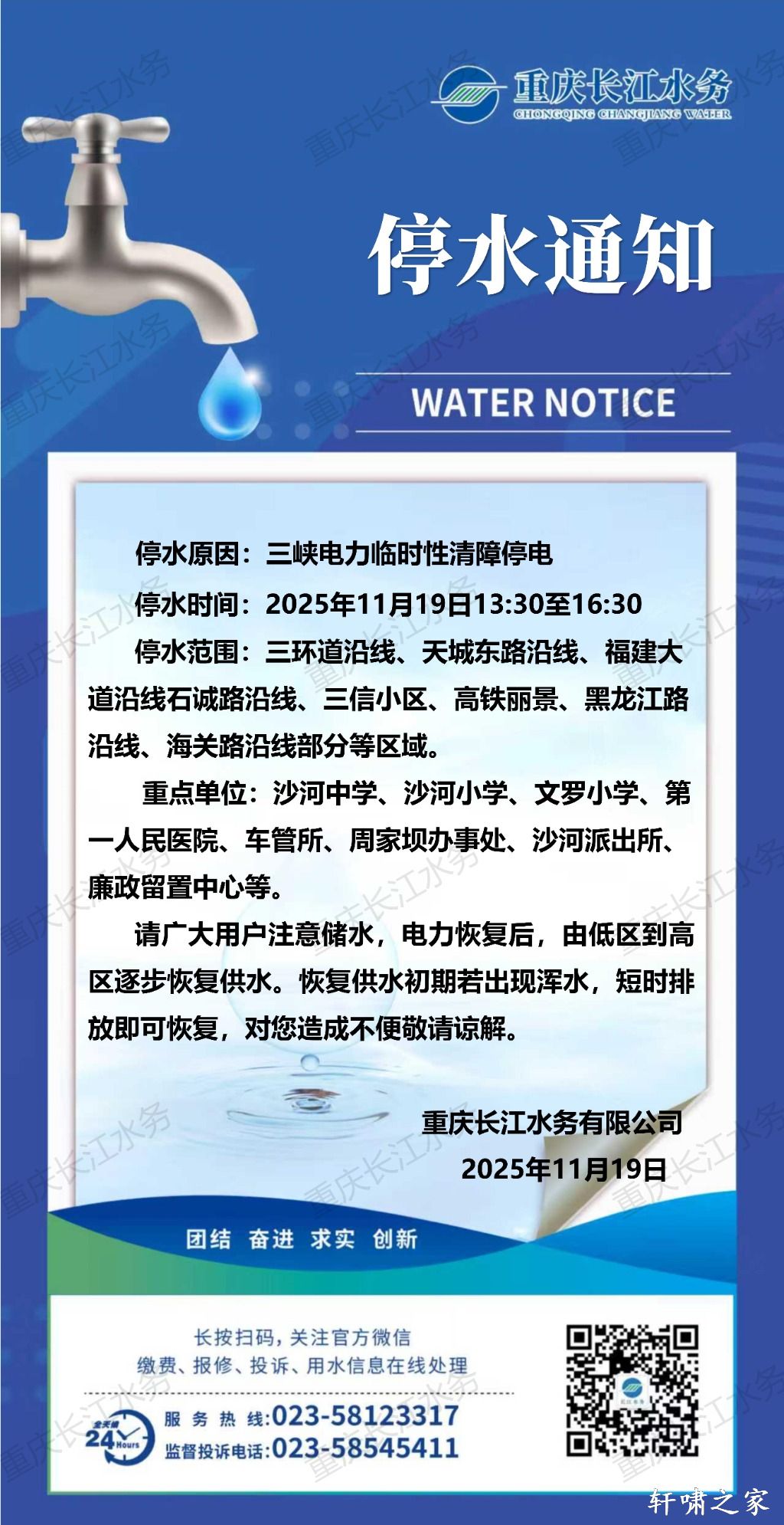 今天万州这些地方要停水。