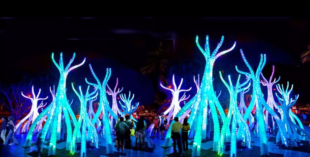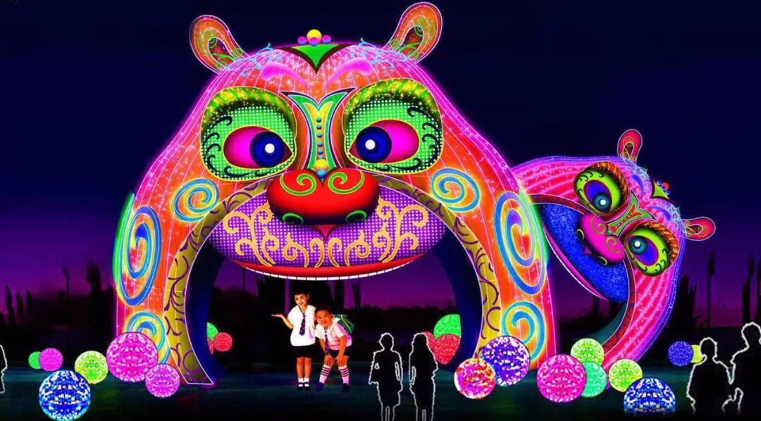 值得一提的是,所有灯组皆采用丝扎内透、分色裱糊等制作工艺,引进声、光、电等高科技表现手法,将传统手法与现代光影科技相结合的方式,赋予彩灯强烈的表现力,体现鲜明的时代感,做到淋漓尽致的刻画活动主题,最大程度的烘托灯会氛围。