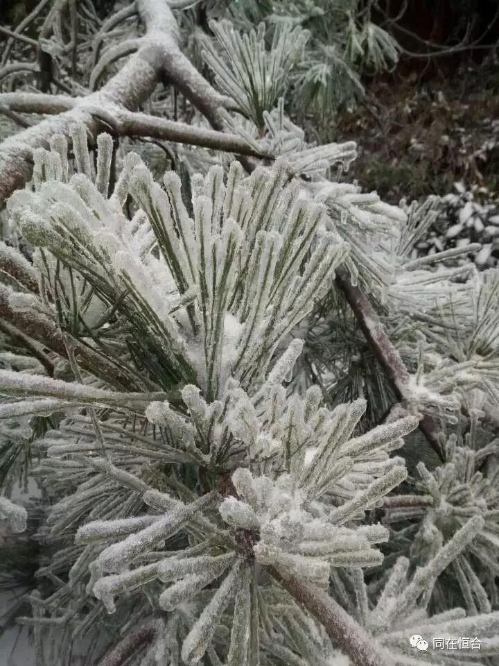 如一夜春风来,千树万树梨花开清晨,推开门,只看见,屋檐上、树枝上到处都是白茫茫的一片。一瞬间,真的是太美啦!