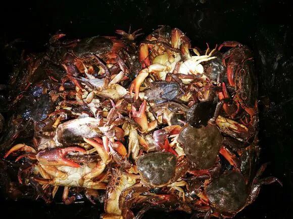 9其他其实能搬螃蟹的地方真的很多。再比如长坪厂里面,瀼度新月湾,长岭,甘宁,大周,小周等等,只要有小河沟的地方都有。照螃蟹要逆水而行,人在河里走,所带动的波纹让螃蟹感觉到了,就会逃走。逆水行走,螃蟹就感觉不到了。手电筒光不能乱照,螃蟹看到灯光就会逃走,所以灯光只照脚下,看到螃蟹,出手要迅速,抓住螃蟹,扔进水桶里。