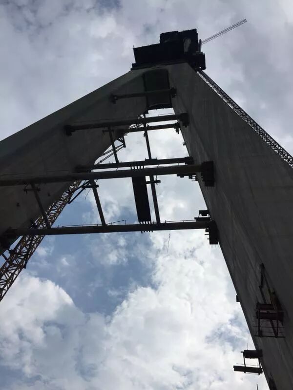 南岸248米高的主塔完成封顶,