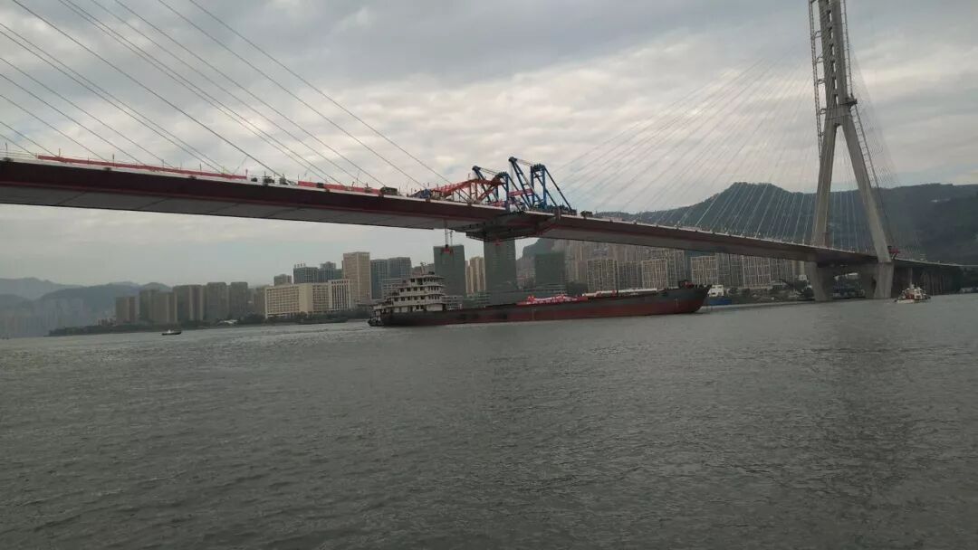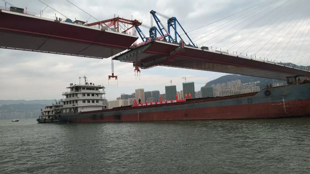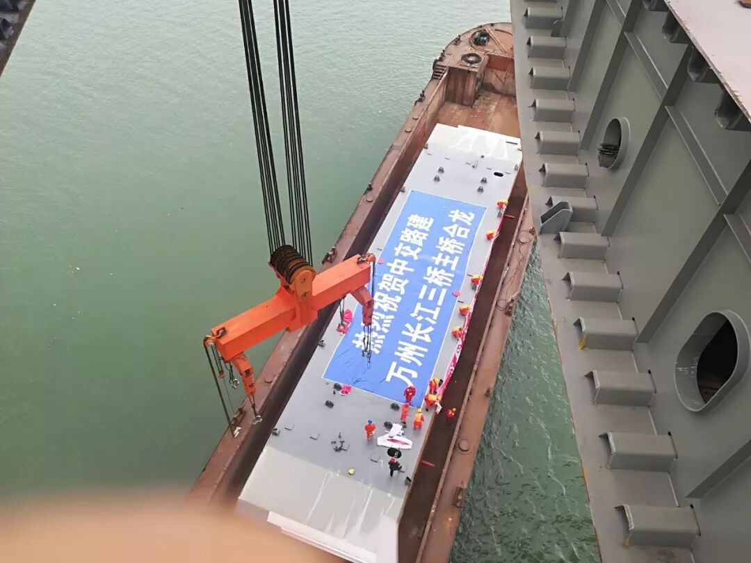 2018年10月25日,南岸主梁中跨钢箱梁合龙。