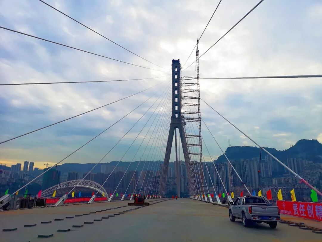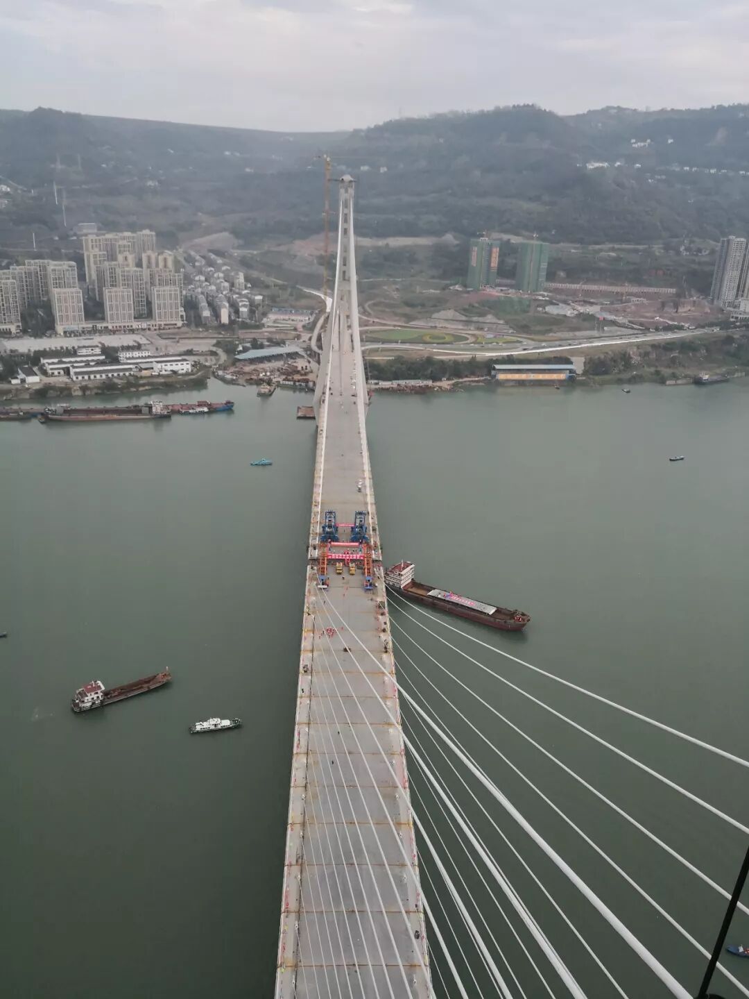 万州牌楼长江大桥全长2120米,主跨730米,两岸塔高分别为高248米和高208.2米,由88对斜拉钢索拉托桥面,它系三峡库区跨径最大的斜拉桥,水下施工深度中国内河第一,大桥的异型索面安装属国内首创。大桥成功合龙,也意味着一系列技术难关成功攻克,这一节点无疑具有重大意义。