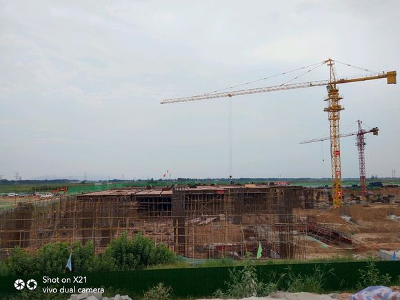 郑万高铁方城站。站房正在做大理石干挂。后面已经涂装