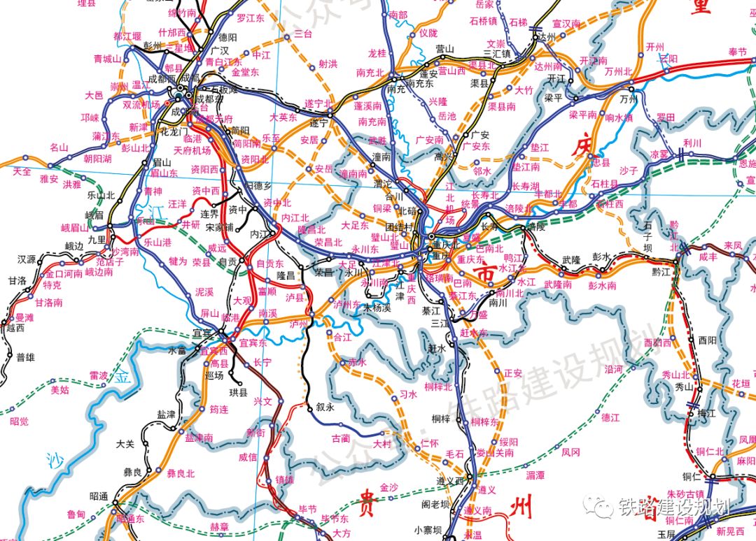2019年7月10日版本发布至今,全国铁路建设和规划情况又发生了较大变化,部分线路走向和站点设置逐渐明朗,此次修正和新增部分规划线路,主要更新内容如下:①成达万高铁根据巴南城际铁路初步设计方案,引入既有南充北站并新建高速场,原西桥站改为近营山和蓬安县城设站;②渝万高铁部分站点调整,汝溪→响水镇,新妙场→巴南北;③合武高铁根据湖北省发改委最新消息,已进入可研阶段,根据可研地质初勘位置信息,线路位于既有合武铁路北侧,金寨县梅山水库以北,走向控制点为汉口-长江新城-麻城北-汤家汇-金寨东-六安北;4、天津至潍坊至烟台高铁已完成可研评审,站点名称及走向调整,蓬莱市站规划预留渤海海峡跨海通道引入条件;天津至雄安高铁规划引入滨海南站;7、根据近期江苏省铁路集团消息,镇宣铁路因与宁宣铁路功能重叠,拟将引入地由宣城调整为杭州,因此镇宣铁路调整为镇杭铁路,并接入宜兴站;9、中铁四院已于今年5月开始调研荆岳铁路规划研究,原图荆州至常德铁路调整为荆州至岳阳;另常岳昌铁路走向按铁四院规划研究方案调整为经湖北通城;10、汕漳高铁新增潮州东站、渝昆高铁新增泸州东站;12、定西至平凉至庆阳铁路调整为时速160公里单线电气化标准。2、新增成都(天府)至三台铁路,共分为三期建设,其中一期清泉至金堂东段全长16公里,已开展可研;