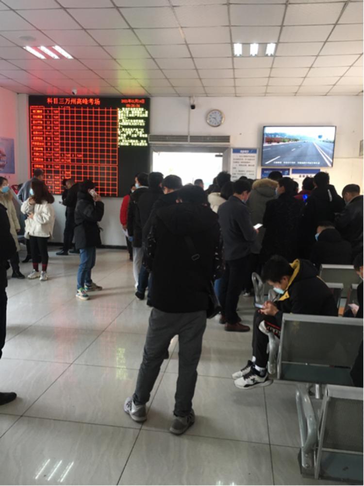 今天1月14号,现在时间9点30考试的学员占满了大厅。不考试,一问原因是,考官还没来。我想政府公务员最迟不就是9点上班吗?考官可以迟到,让我们这么多学员等那么久,并且还不知道要等好久才考试考试。周家坝车管所考试就很准时。