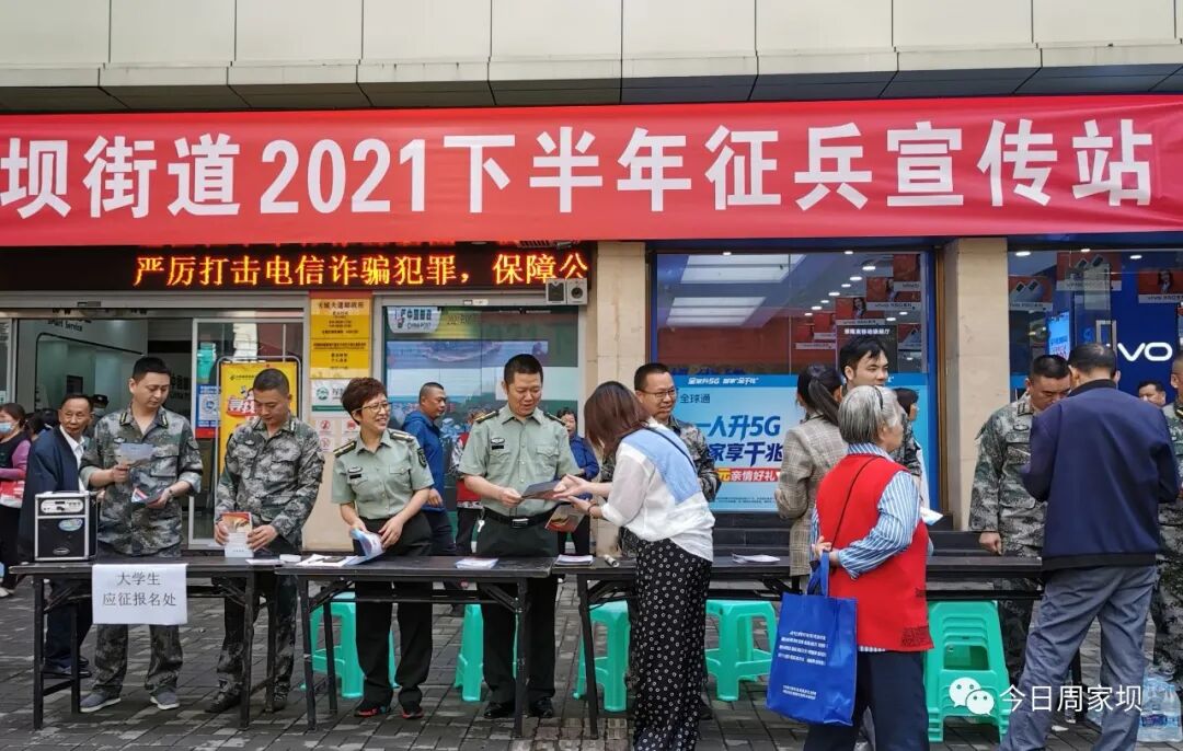 6月4日,周家坝街道人武部组织开展了2021年下半年征兵系列宣传活动,征兵工作扎实有序推进。