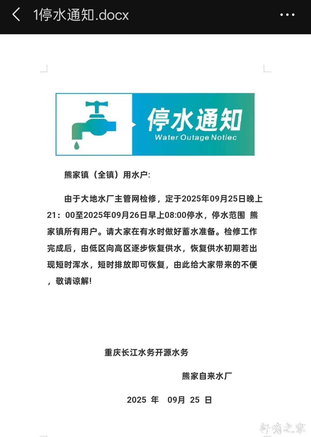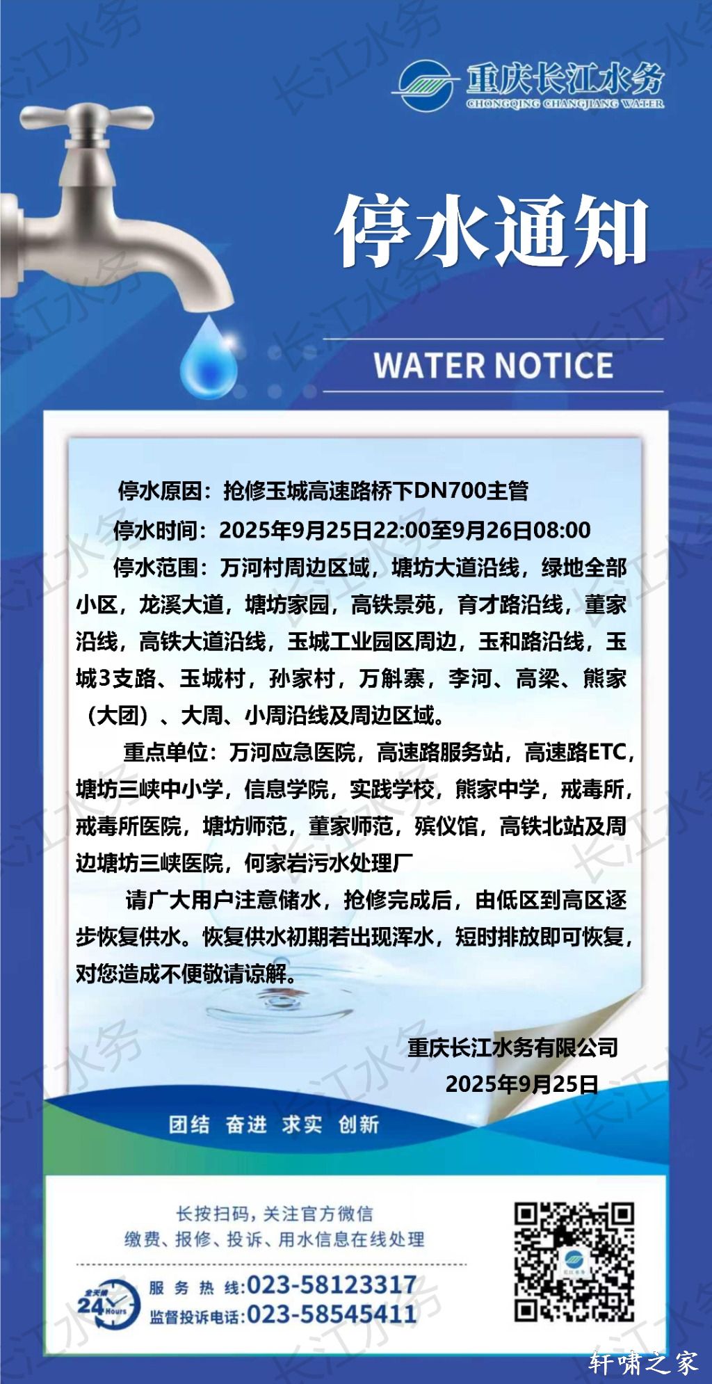停水时间:2025-09-25 22:00至2025-09-26 08:00