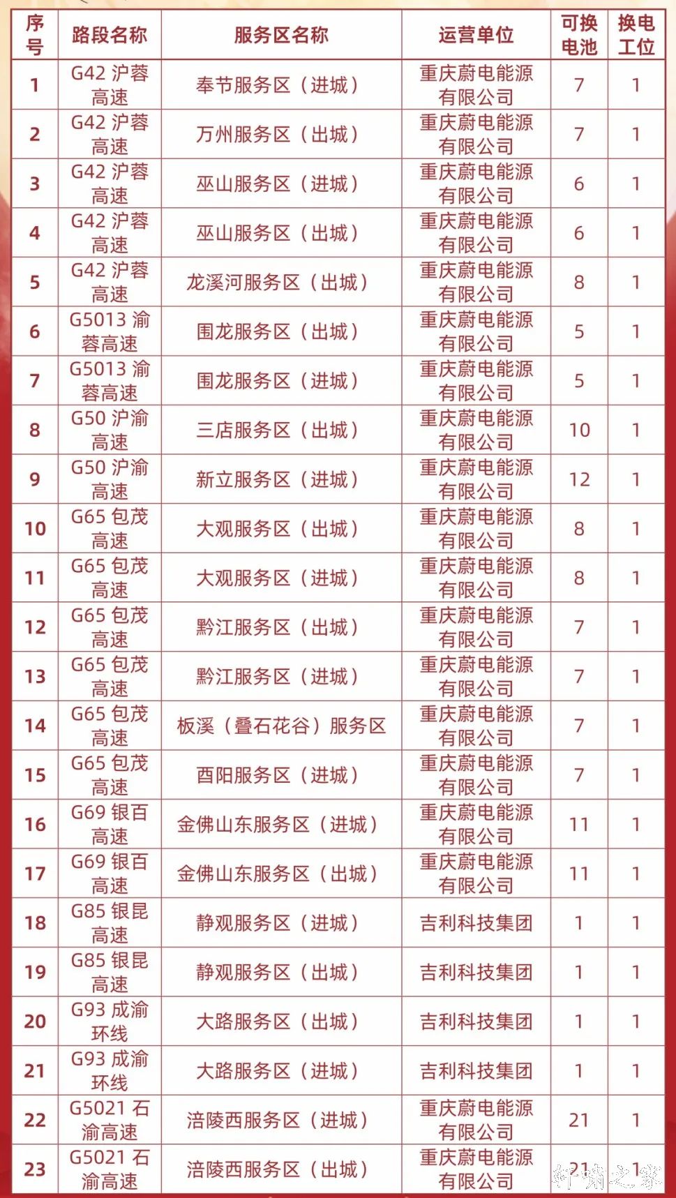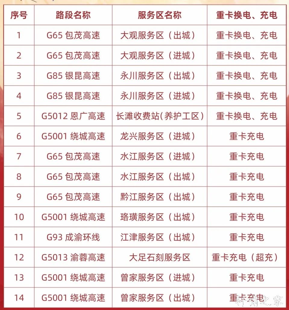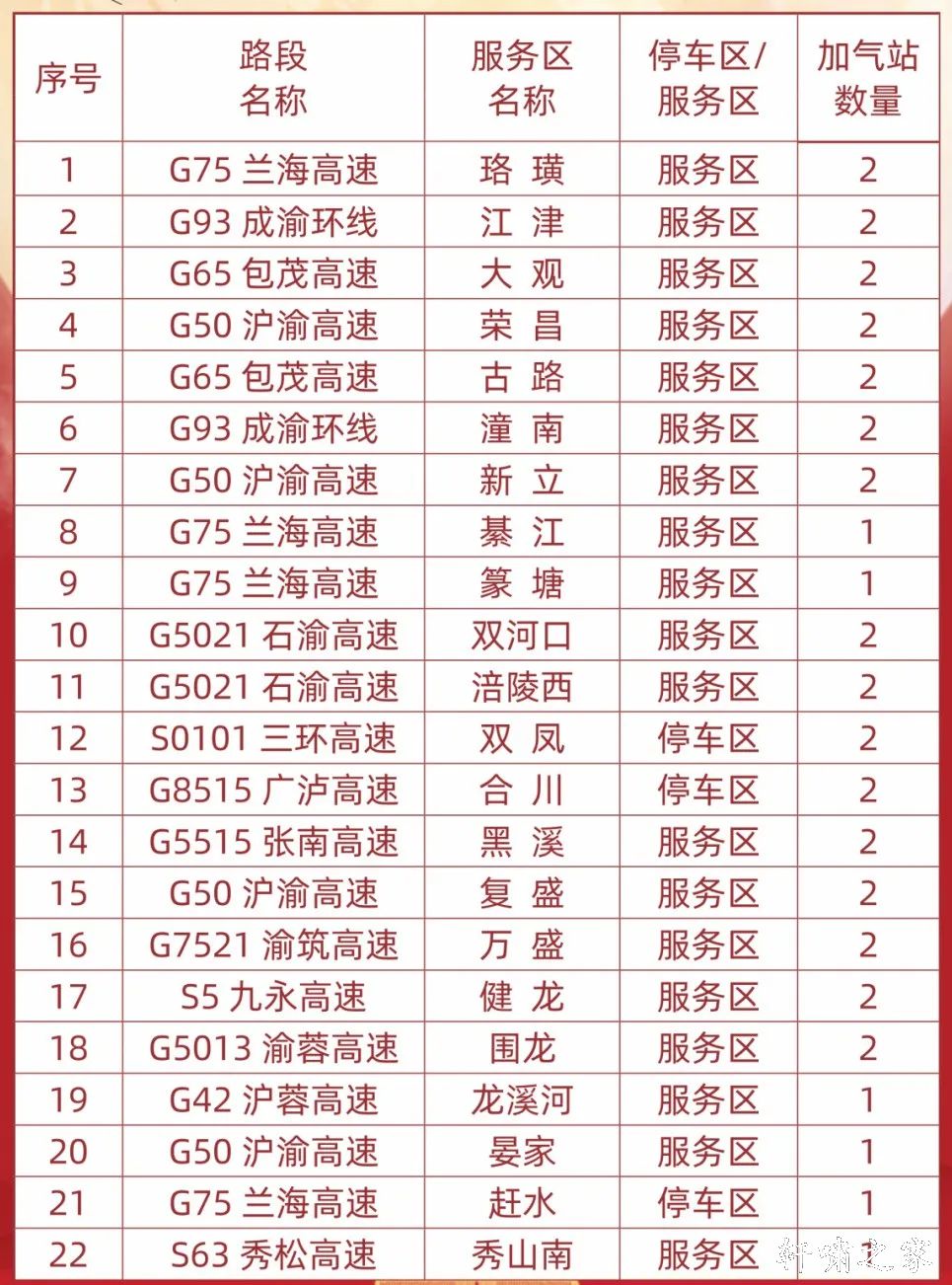 重庆高速特梳理了较繁忙的服务区点位,请提前做好行程规划。