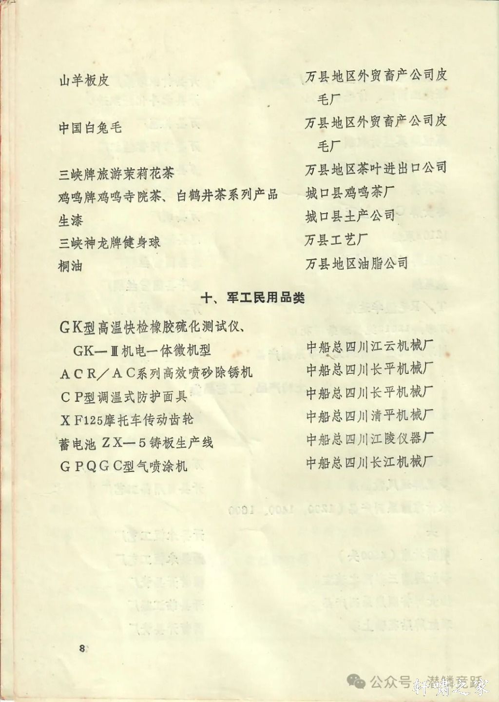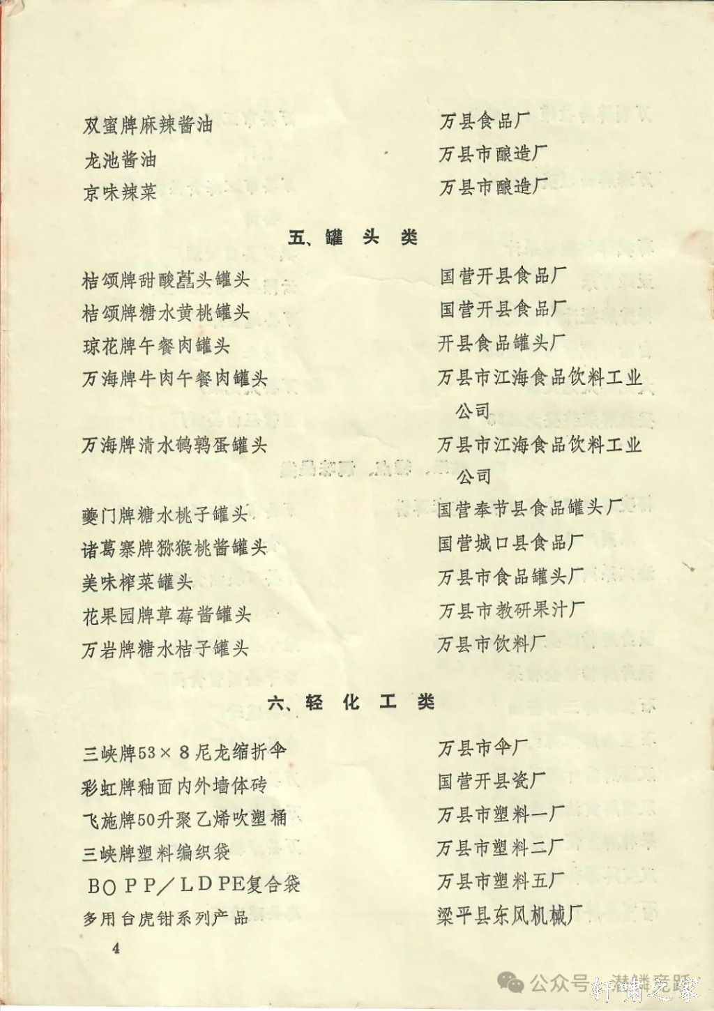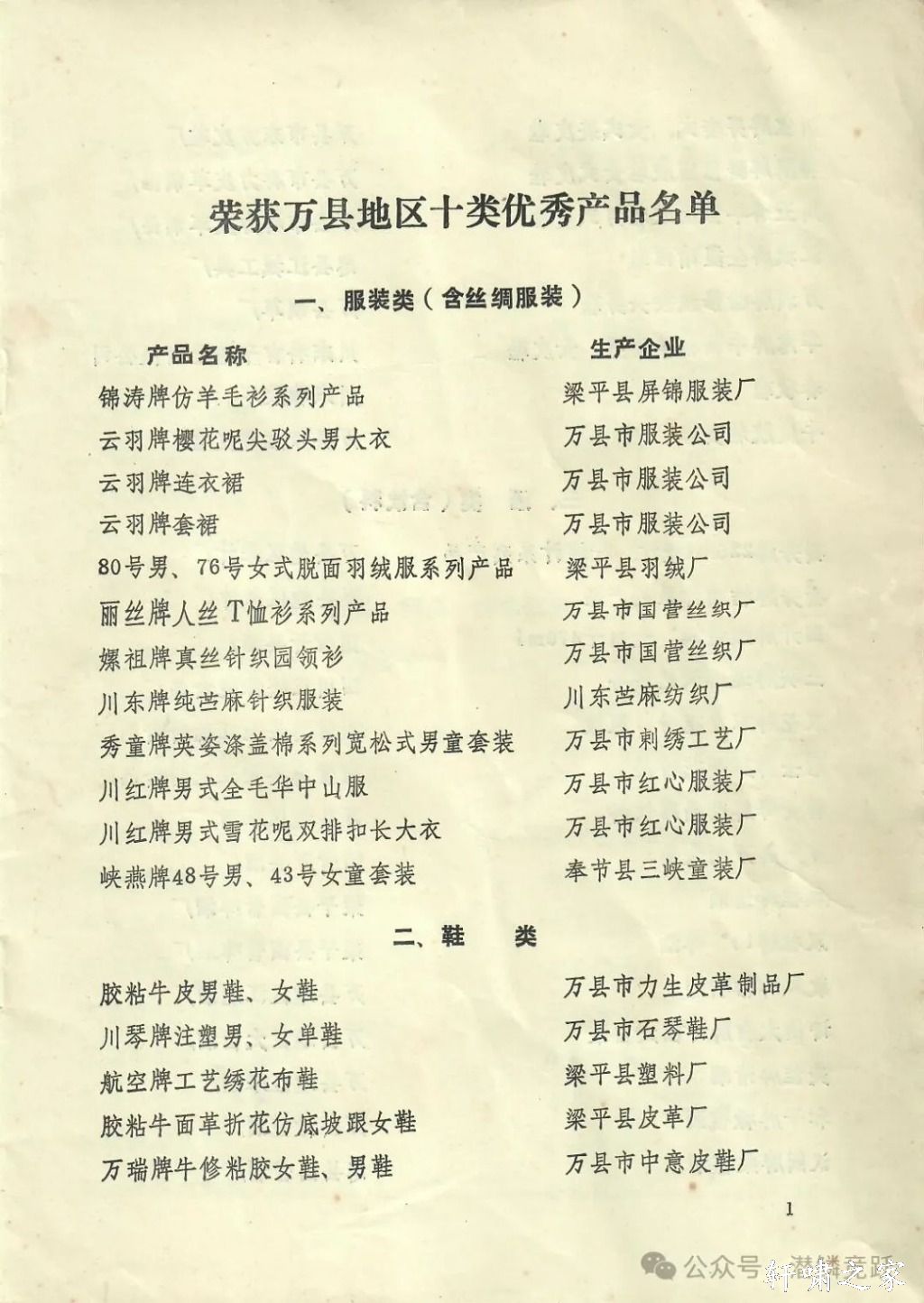 里面列举了服装类(含丝绸服装)、鞋类、酒类(含饮料)、糖果糕点调味品类、罐头类、轻化工类、粮油肉食制品类、土特产工艺品类、军工民用品类十大类,涉及100多个产品,生产企业几十家,涵盖所辖全部九县一市,每个门类的实力也不弱。其中,还有父辈、爷爷辈工作过的工厂。