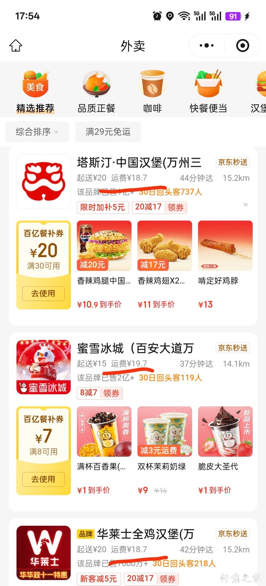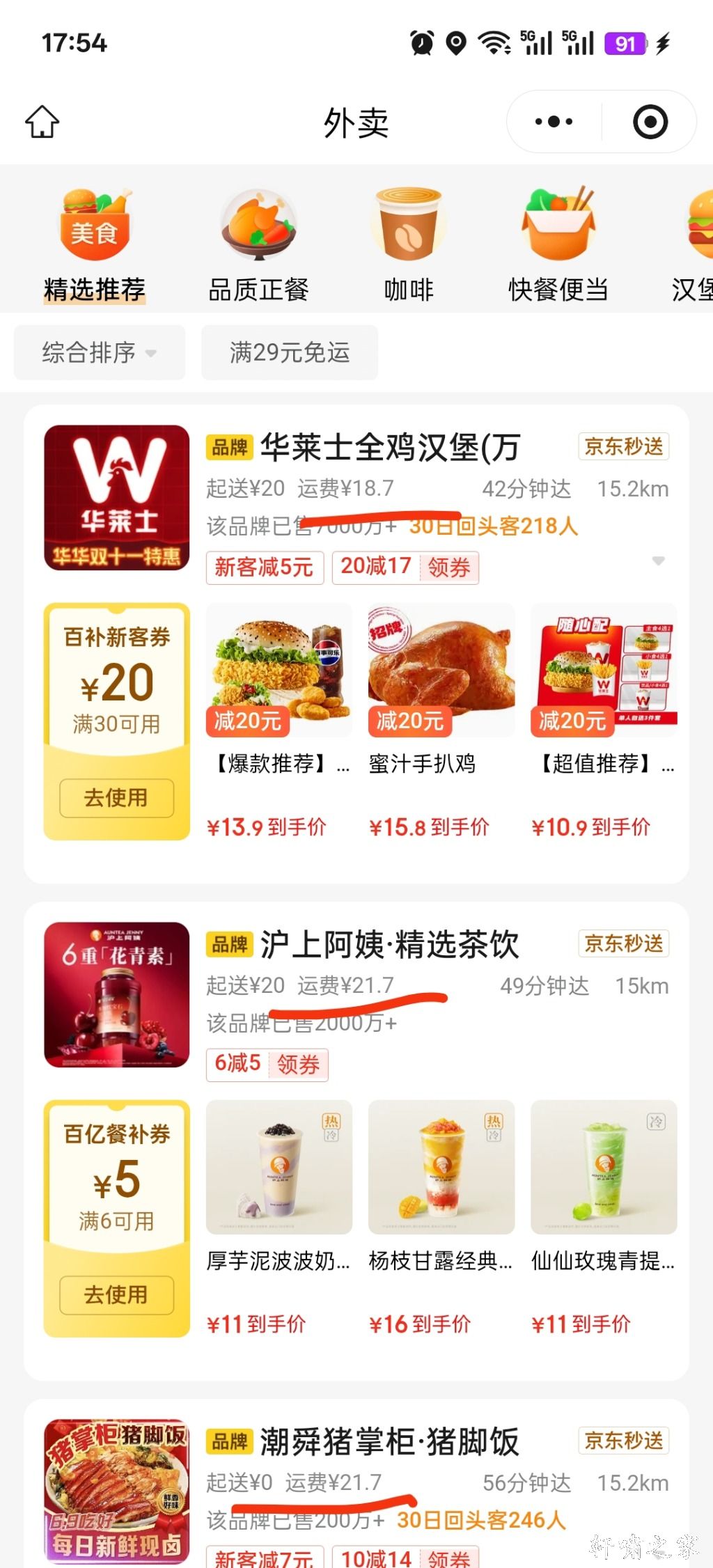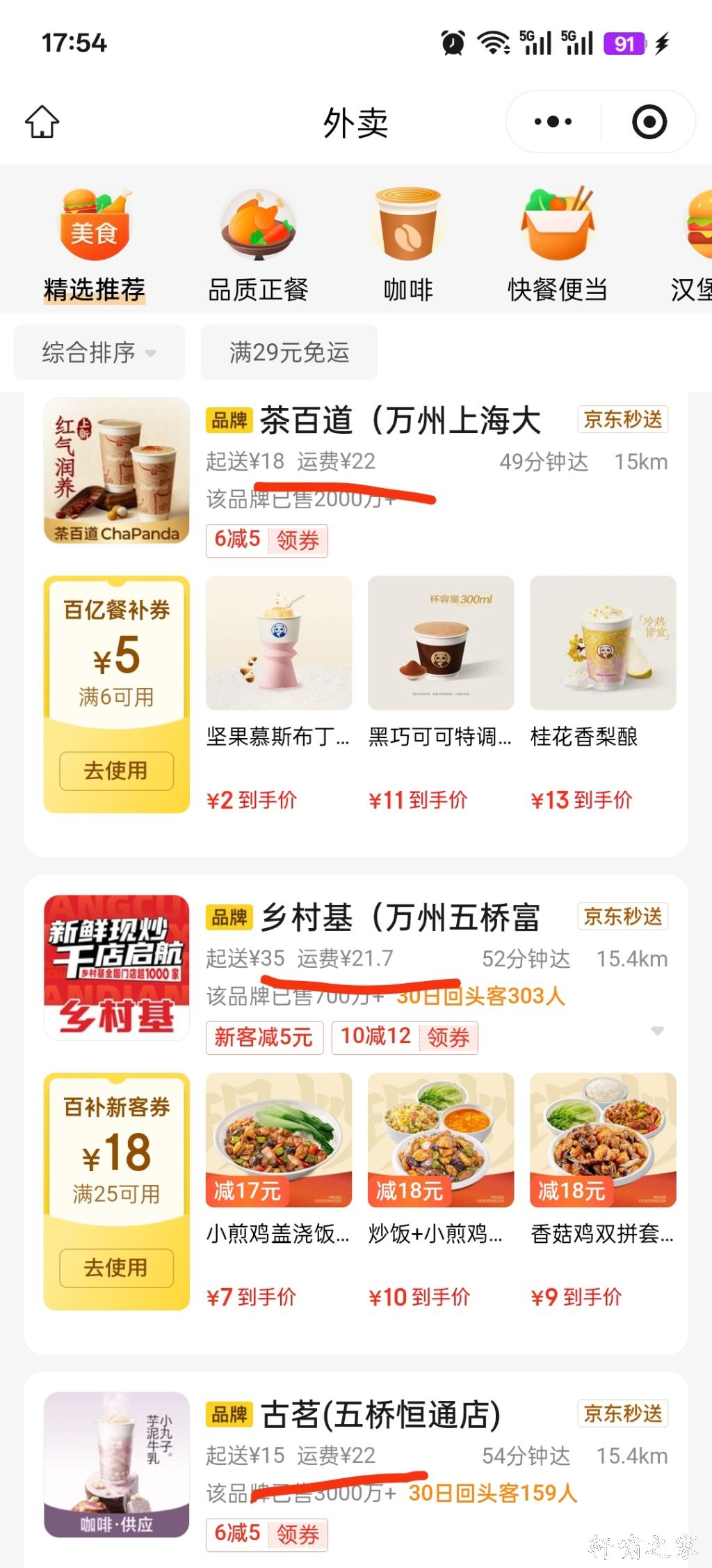 新田也可以点五桥的外卖了,就是运费有点贵。